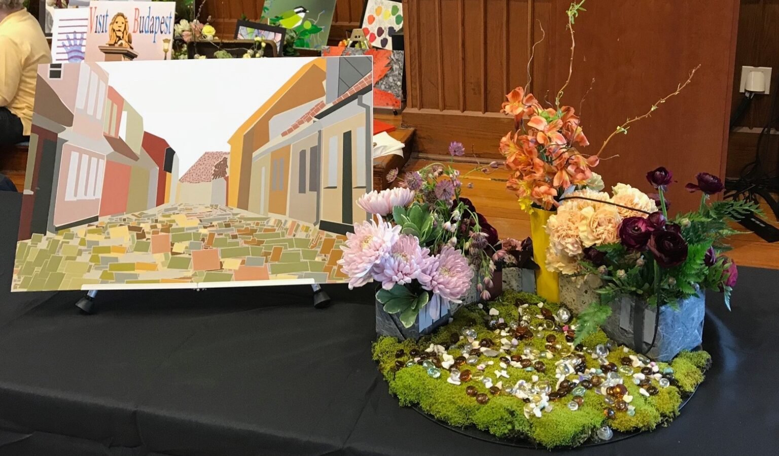 For three days in March the people of Harvard admired art and flowers in the beautiful Volunteers Hall of the library.