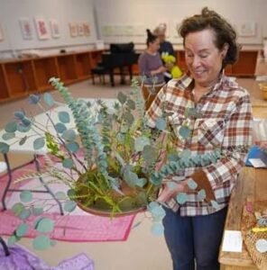 In anticipation of the exhibit, club member Deb Dowson gave a presentation last week in which she explained how to create a floral arrangement using design elements and principles, scale, meaning, or inspiration of an art piece. She also explained how to trim and condition the plants to withstand the duration of the exhibit, and how to create structures to hold them up.